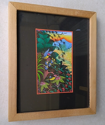 緻密な描写が命の細密画は、伝統バリ絵画の屋台骨といっても過言ではないほどの重要な技術で、ウブド郊外のクリキ村がその本場です。バリ島の自然と農村文化が調和した田園風景や花鳥風俗をテーマにした作品を2点セットで販売いたします。