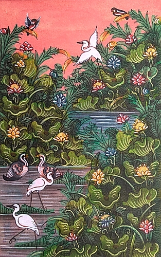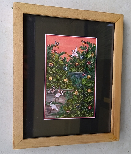緻密な描写が命の細密画は、伝統バリ絵画の屋台骨といっても過言ではないほどの重要な技術で、ウブド郊外のクリキ村がその本場です。バリ島の自然と農村文化が調和した田園風景や花鳥風俗をテーマにした作品を2点セットで販売いたします。