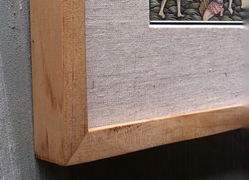 この作品はチーク色の木製ボックスタイプ額縁(麻マット+アクリル板付)に入れてお届けします。