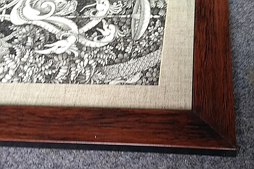 この作品はこげ茶のカーボン製額縁(麻マット+アクリル板付)に入れてお届けいたします。