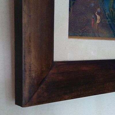 この作品は重厚な無垢材を使用した幅広の木製額縁(麻マット+面金+アクリル板付)に入れてお届けします。 |