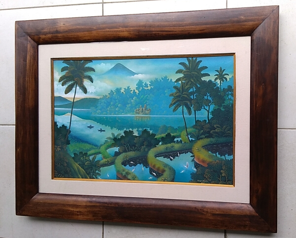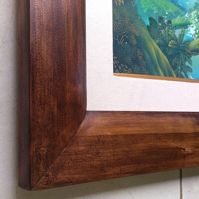 この作品は重厚な無垢材を使用した幅広の木製額縁(麻マット+面金+アクリル板付)に入れてお届けします。 |