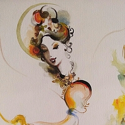 真っ白なキャンバスに、流れるような筆使いでボディラインを一気に描き出し、鮮やかな彩色で衣装を重ねて行く。魔法のような筆さばきで、次々と美しい女たちがこの世に送り出されて行く光景には、背筋がゾクゾクするほどの興奮を覚えました。