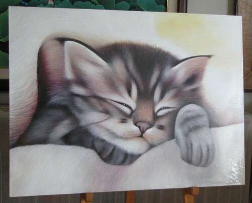 この作品は、幅の広い木枠にキャンバスを張ったもの(ファブリック・ボード)です。額縁がなく超軽量ですので取り付ける壁面の材質を問いません。