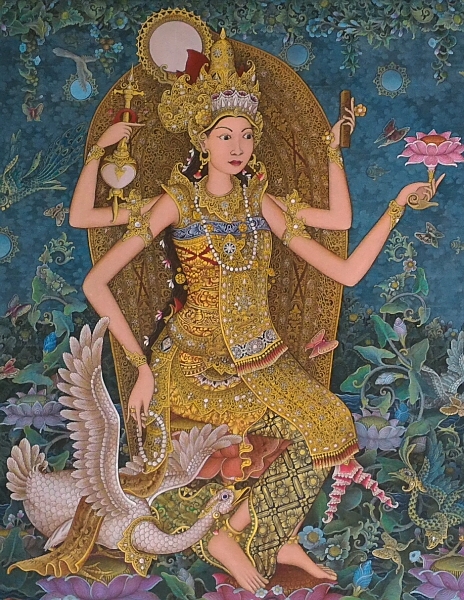 女神サラスワティは学問と芸術の守護神として人気があります。祝日かどうか分かりませんが、バリ島には「女神サラスワティの日」があり、この日は本を読んだり、音楽を奏でたり聴いたりすることが禁止されているとのこと。年に一度は女神様に休養を与えようとの配慮からでしょうか…。