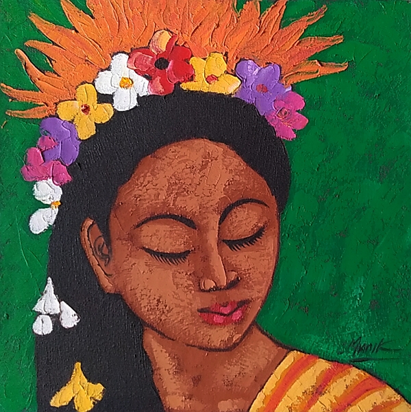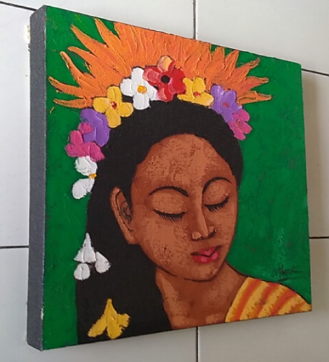 1975年ウブド郊外のクデワタン・ラシアカン村の農家に生まれる。少年時代は主にヤング・アーティスト スタイル画を学び、美術高校卒業後は独自の画風の創作を目指し、人物の目を伏せることにより、内面の感情を表現する画風を創作する。バリ島のホテルやギャラリーでの個展の実績あり。 |