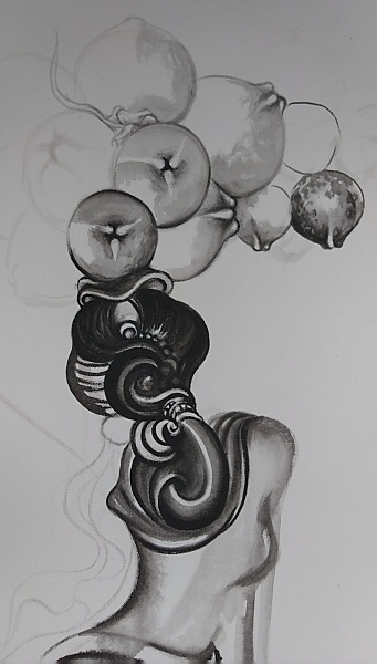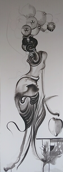 真っ白なキャンバス/紙に、流れるような筆使いで美しい花や女たちが一気にしかも繊細な描写で描きだされていく光景にはとても驚かされました。氏にとってアートとは脳内に浮かび上がった(創造した)イメージをキャンバスに映し出すことであり、それが一つの作品となって完成したものがアート作品とのこと。記憶の中から引っ張り出してきて描かれたものは、自分にとってはコピーのようなものと言っておられました。泉のように湧き出てくるインスピレーションを、産みの苦しみの中でイメージとして創造する姿は時に苦悩に満ちていました。鋭い眼光のKetut氏はその後さっさと釣りに出かけました。何故かバリ島では魚釣りが好きな画家さんと出会うことが多いようです。