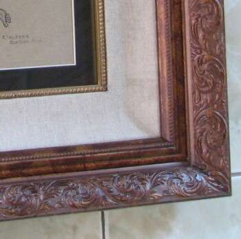 この作品は高級感溢れる唐草模様の入った木製額縁(ライナー+アクリルボード)に入れてお届けします。