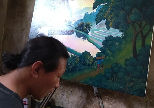 WARDITA氏と奥様SRINIさん共作の油彩画作品です。構図と仕上げをWARDITA氏が担当し、配色と細かな着色をSRINIさんが行い、完成まで4ヶ月ほどかかりました。