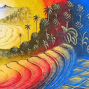 ワルター・シュピースがこの世を去って60有余年。シュピースの愛したこの地に、新しい幻想的な熱帯風景画の才能が誕生した。暗い闇夜から光り輝く桃源郷へ、眩いばかりのコントラストで表現された理想と現実が交錯する幻想的な世界が魂の奥深くへと沁み込んでくる。バリ島伝統絵画と現代絵画が融合したオリジナリティに溢れた作品は、近代バリ絵画の旗手として高い評価を得ている。