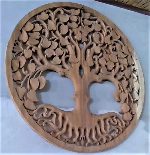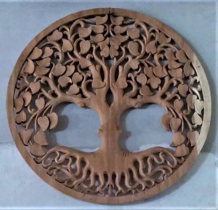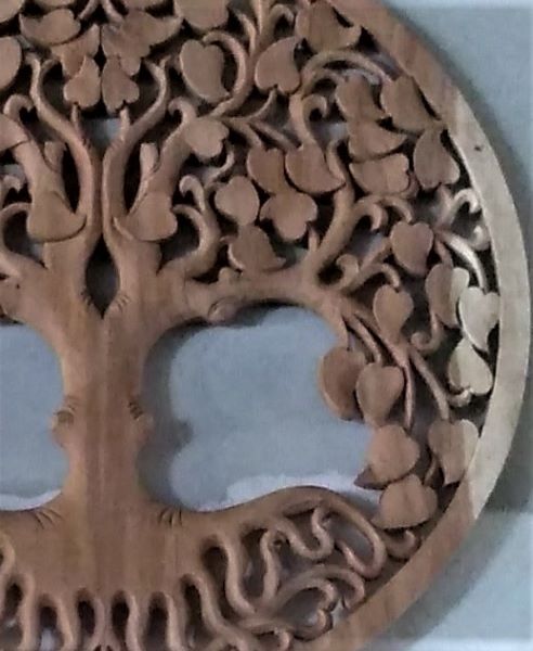 木彫円形透かし彫り 「心豊かな木」