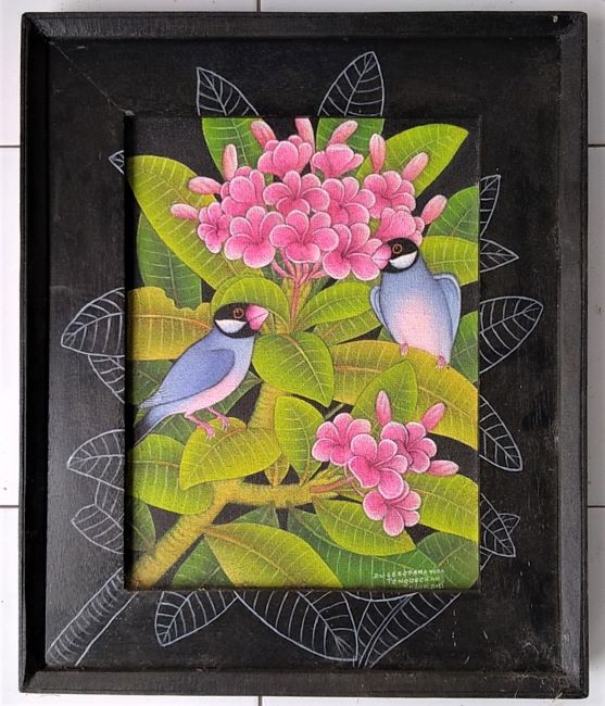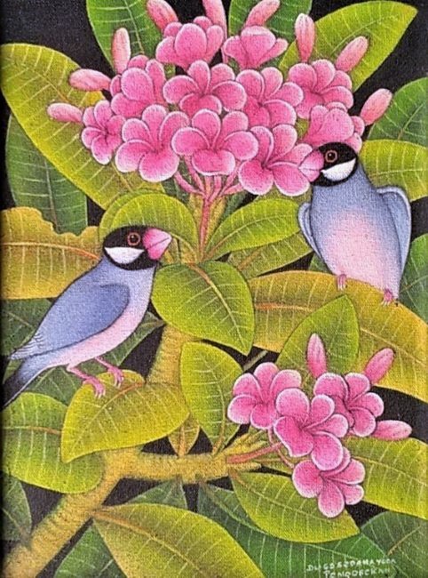Dewa Martin 作品 : 二羽の文鳥とピンクのプルメリア