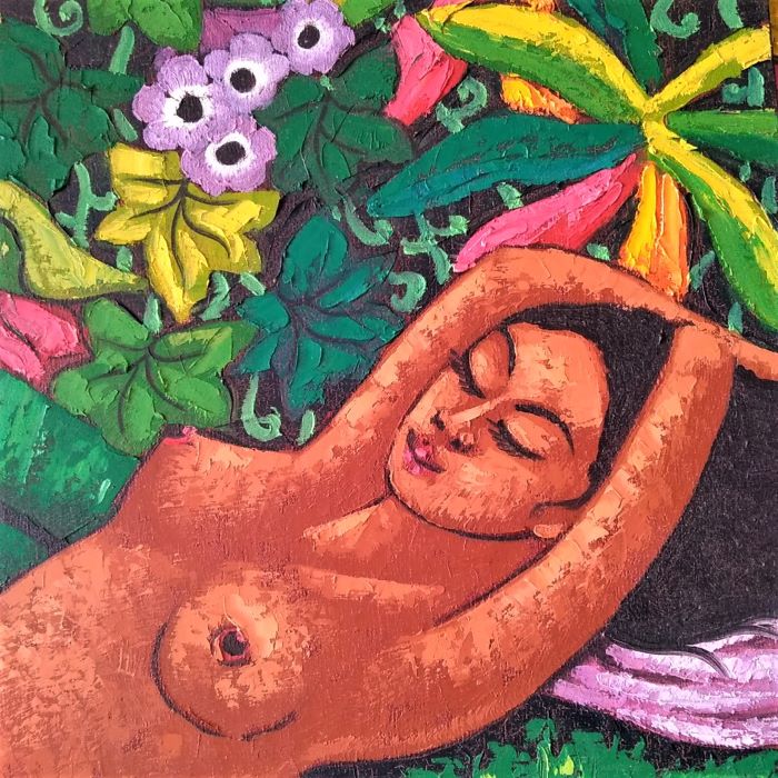 1975年ウブド郊外のクデワタン・ラシアカン村の農家に生まれる。少年時代は主にヤング・アーティスト スタイル画を学び、美術高校卒業後は独自の画風の創作を目指し、人物の目を伏せることにより、内面の感情を表現する画風を創作する。バリ島のホテルやギャラリーでの個展の実績あり。 |
