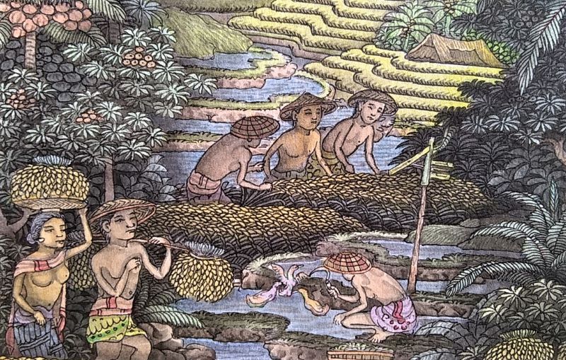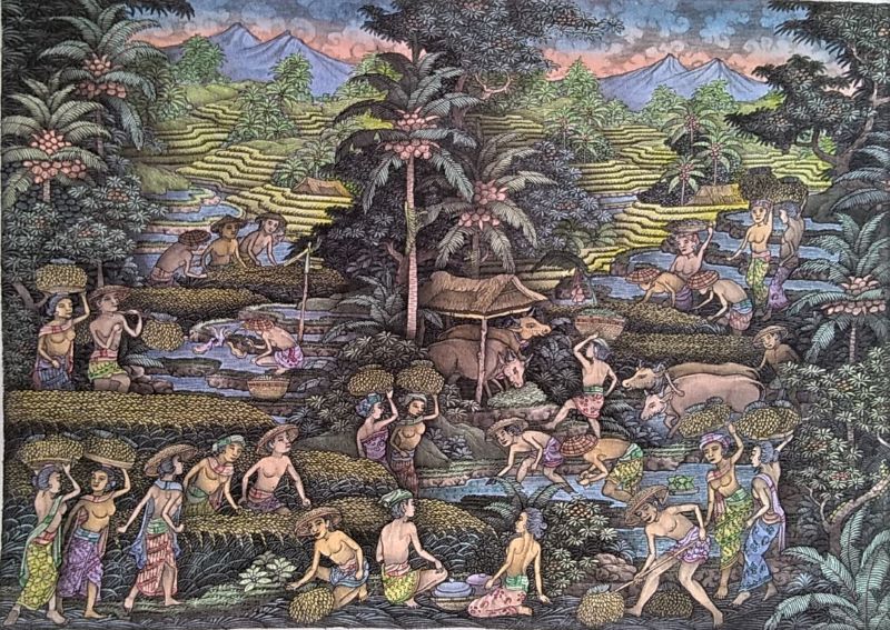 村人たちの日々の生活や祭礼行事などが、美しいバリ島の農村風景を背景にコミカルなタッチで描かれた躍動的で楽しい作品です!