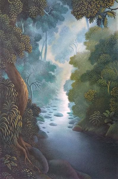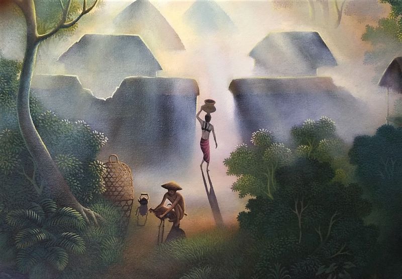 清冽な空気が流れる山間の早朝の棚田風景が凝縮して描かれた珠玉の作品。