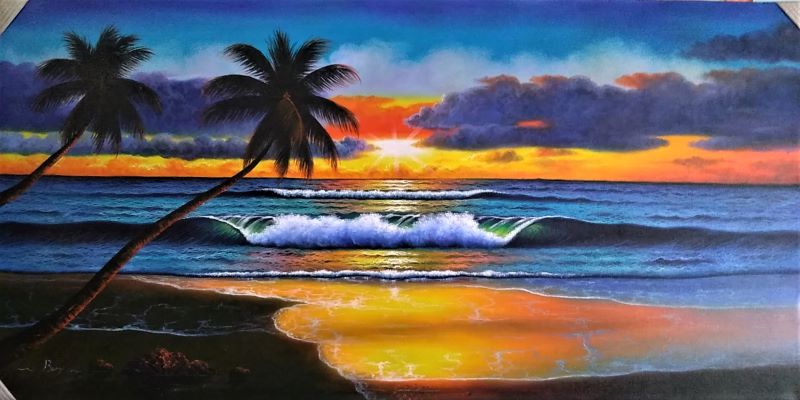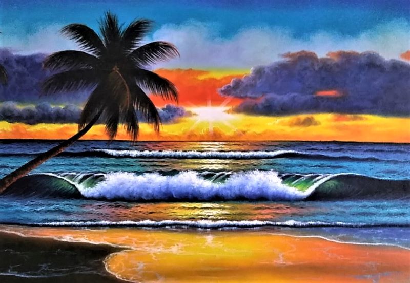 の風景で、インド洋に日が沈む夕焼けの一瞬が描かれた珠玉の作品です!