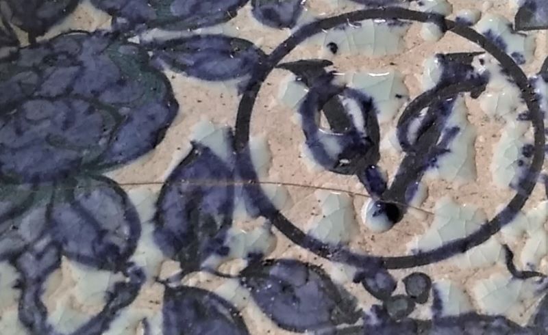 割れ(ヒビ)が入った状態で焼きあがったらしく、窯出しの時に既にこの状態だったように見えます。