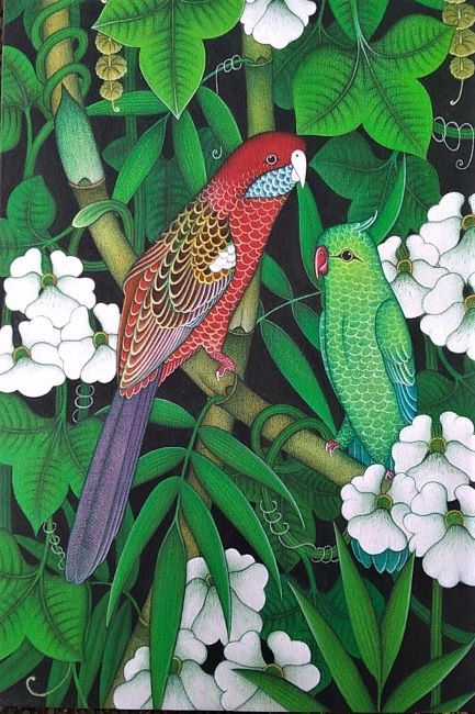 バリ絵画は、豊かな感性と高度なテクニックで画面全体に緻密に描かれているのが特徴で、心を癒す「ヒーリング・アート」として地上の楽園バリ島を訪れる世界中の旅行者に愛されています。
