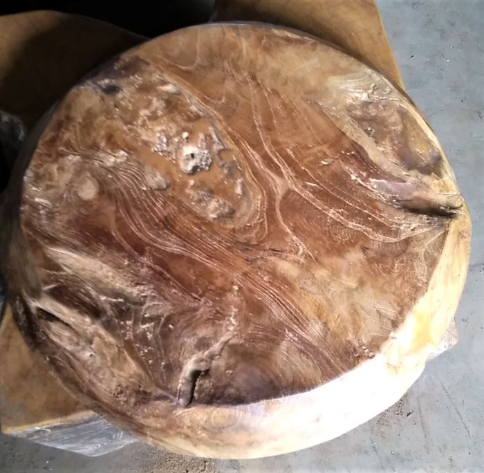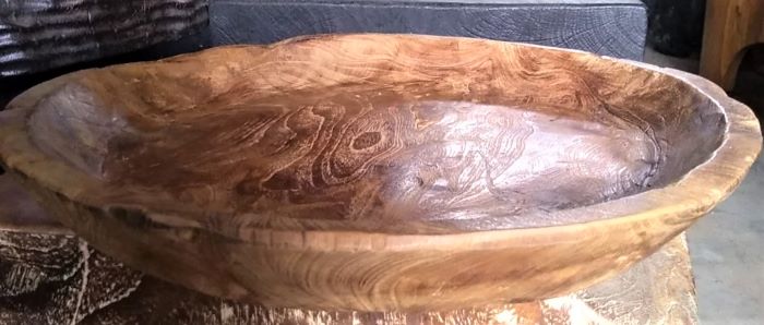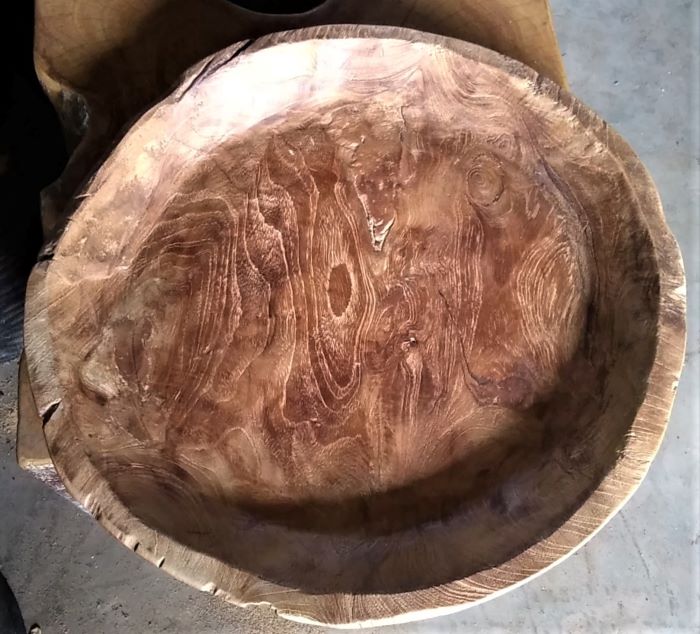 重厚で丈夫な家具材として人気の無垢のチーク古木の皿器です。