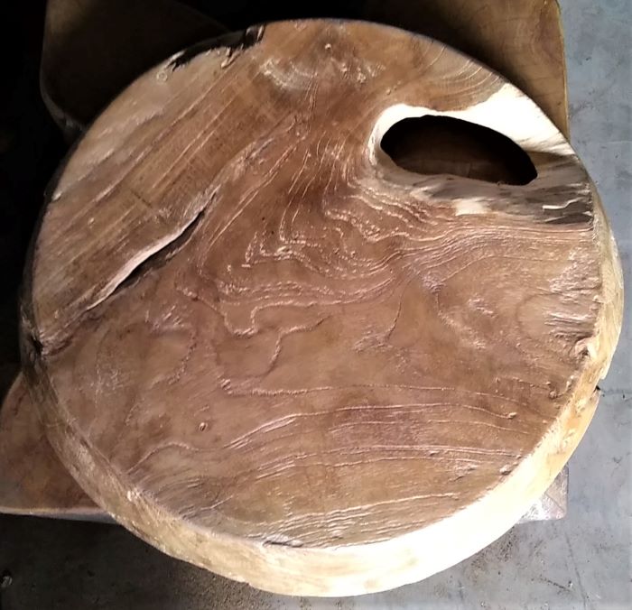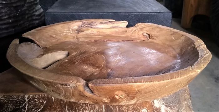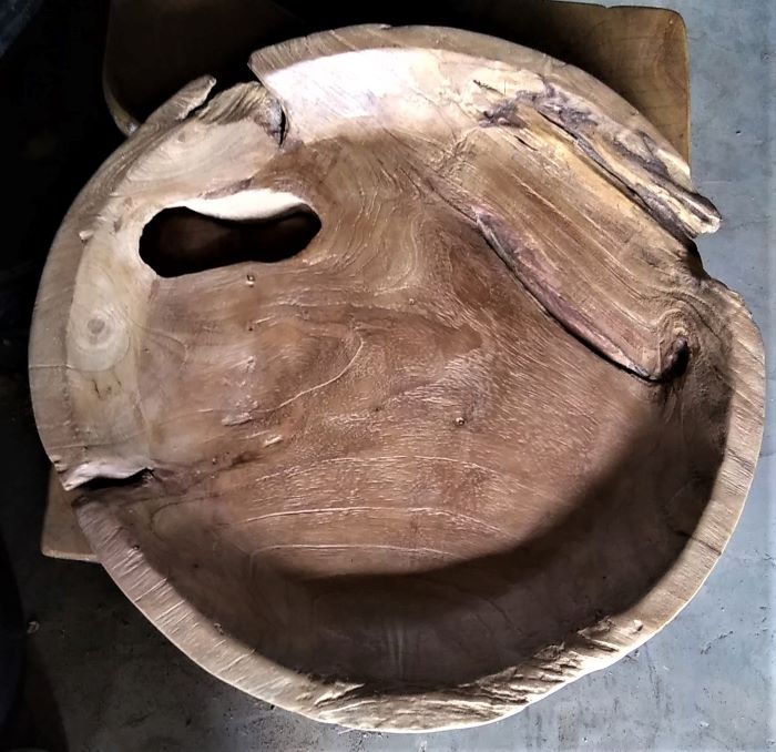 重厚で丈夫な家具材として人気の無垢のチーク古木の皿器です。