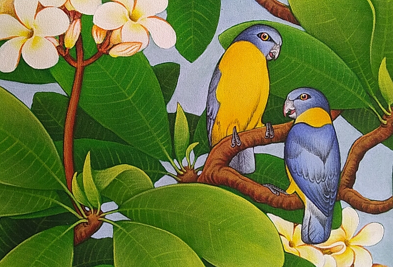 大きな作品ですので木枠のファブリックパネルを用意し、それに張り付けて壁に架けてみましょう。お部屋の中に熱帯の楽園が出現することでしょう!