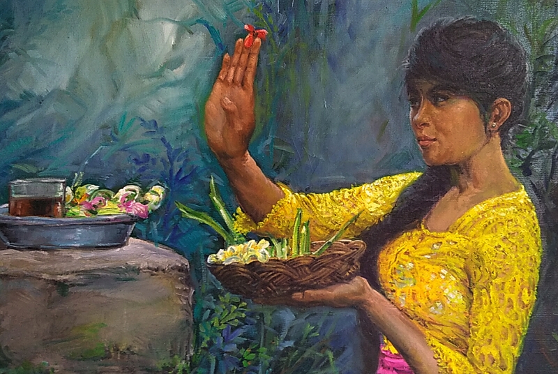 バリ島の芳醇な文化風俗と宗教的儀式、雄大な自然との調和を描いた作品の中の一点です。