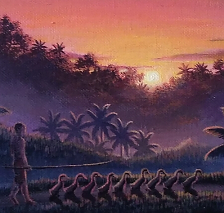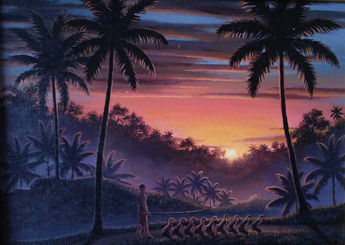 1965年バリ島ウブドの王族の家系に生まれる。1984年ウブドの高校卒業。1990年のプリ・ルキサン美術館でのグループ展への参加をきっかけに画家としての人生を歩きはじめる。創作の対象は抽象画から人物画へと移り、現在はバリ島の美しい自然風景と、それに調和した色彩の空を組合わせた熱帯風景画の制作に専心している。