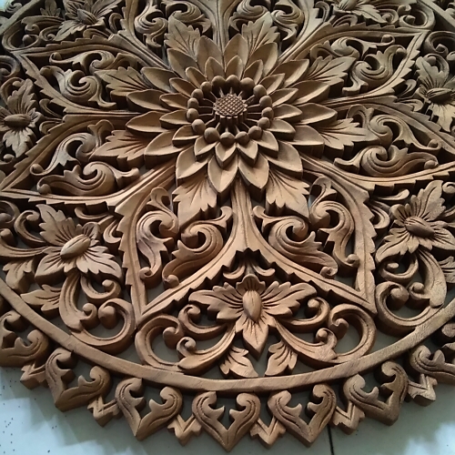 無垢のアカシア材に彫り出したばかりで、表面にまだ塗料を塗っていない段階の作品です。この後、透明のワックスを塗り艶を出して仕上げて行きます。