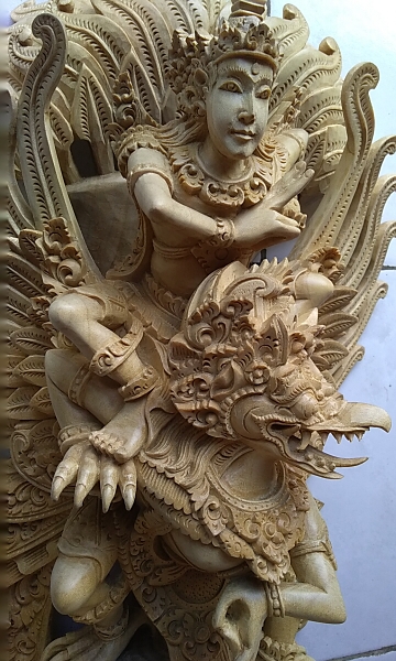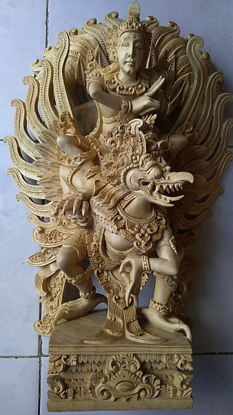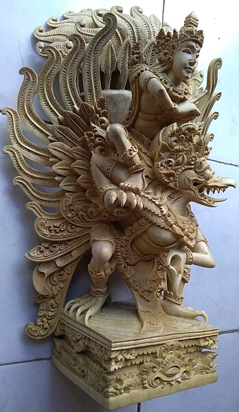 怪鳥ガルーダは創造の神ウイシュヌ神のしもべとなり、ウイシュヌ神が移動する時はガルーダに乗って飛ぶとされています。端正なマスクのウイシュヌ神を力強く彫り起こした銘品です!