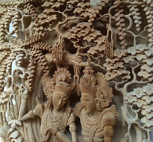 ヒンドウ教の叙事詩ラーマヤナ物語の主人公ラーマ王子とシータが森を彷徨う姿のようです。