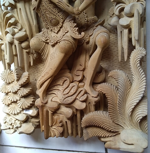 腕の良い職人技の光る透かし彫り作品です。無垢のコプラン材に掘り出したばかりで、この後、透明のワックスを塗り艶を出して仕上げます。