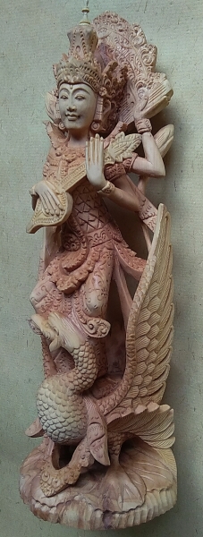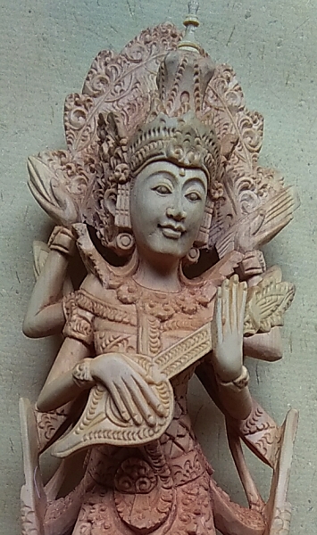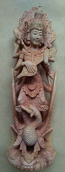 インドネシア産の白檀に彫られた女神サラスワティの立像で、現地では学問芸術一般の神様として学生達に人気があります。