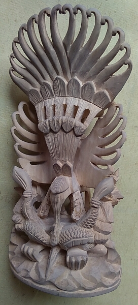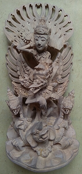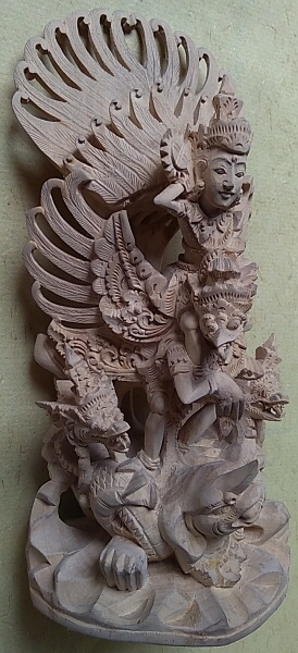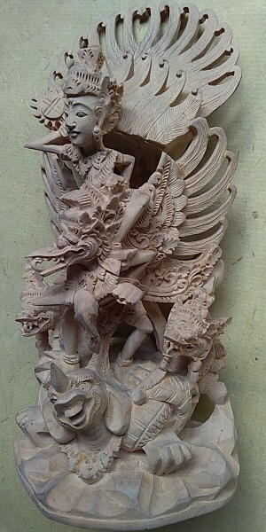 怪鳥ガルーダは創造の神ウイシュヌ神のしもべとなり、ウイシュヌ神が移動する時はガルーダに乗って飛ぶとされています。