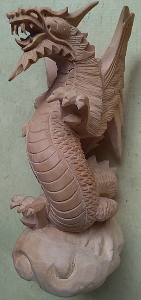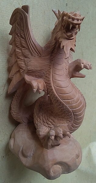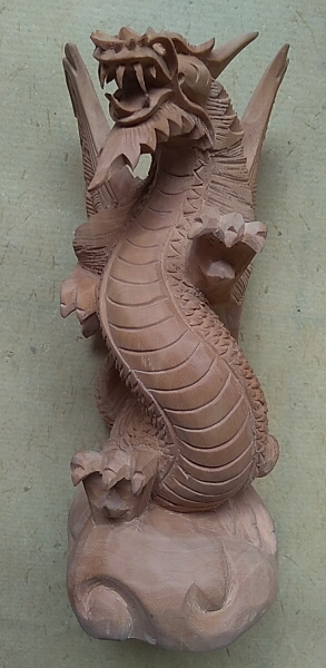 インドネシア産の白檀に彫られた龍・ドラゴンの立像です。