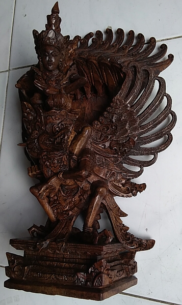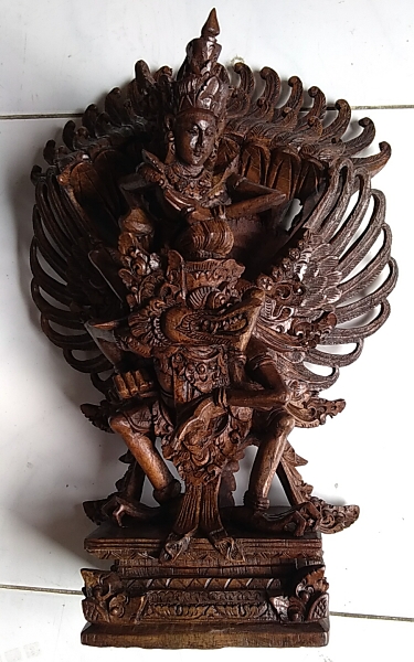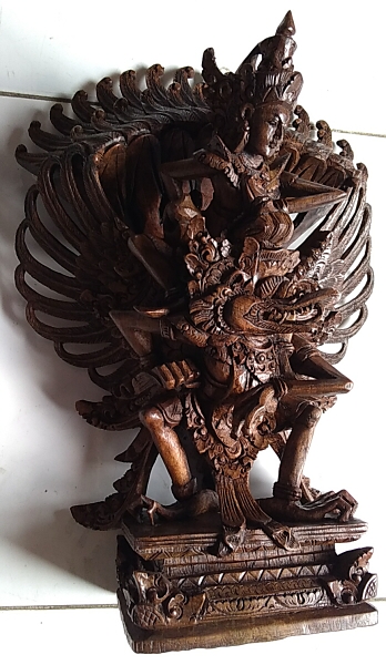 インドネシア産の紫檀に彫られたガルーダとウイシュヌ神の立像で、