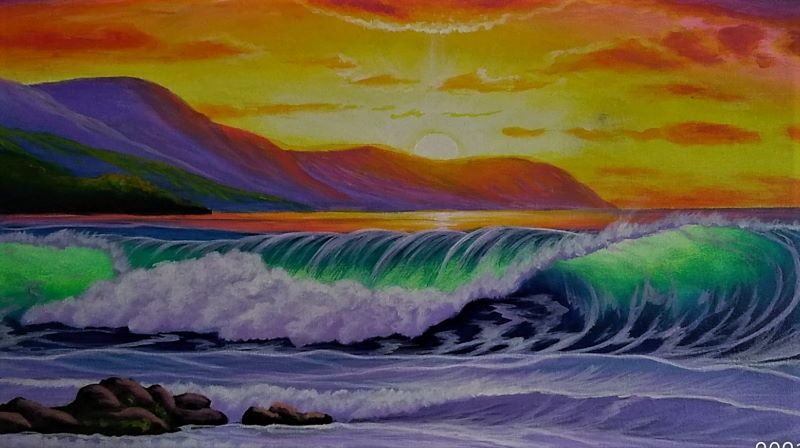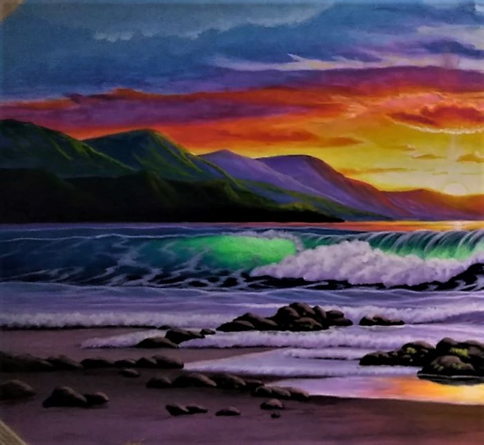 の風景で、インド洋に日が沈む夕焼けの一瞬が描かれた珠玉の作品です!