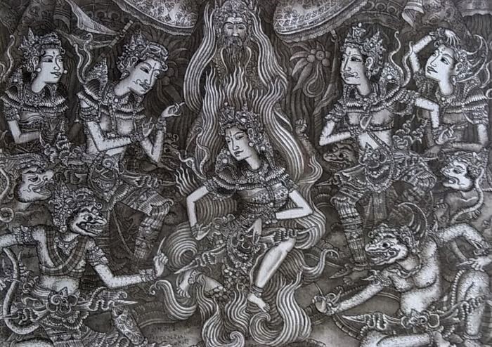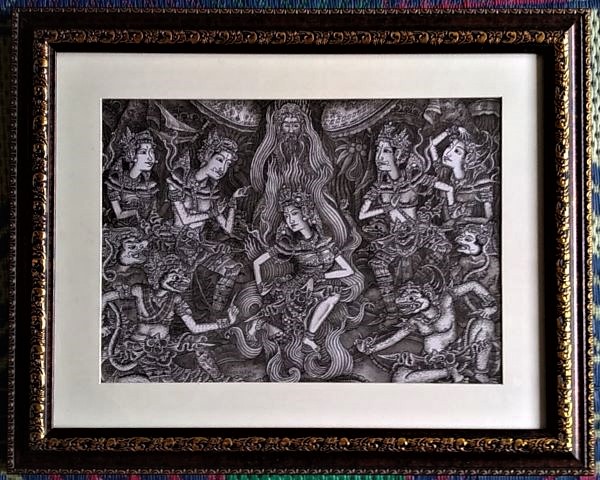 プンゴセカン村の画家MURKA氏は、ヒンドウの神々の逸話や戦いをテーマに描き続ける