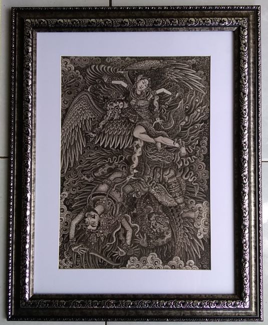 1930年代にバリ島バトウアン村に興った墨絵のような細密画でカマサン・スタイルと近代ヨーロッパの絵画技法が融合してできた技法です。