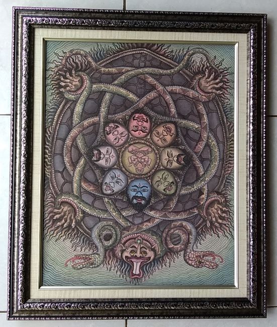 プンゴセカン村の画家MURKA氏は、ヒンドウの神々の逸話や戦いをテーマに描き続ける