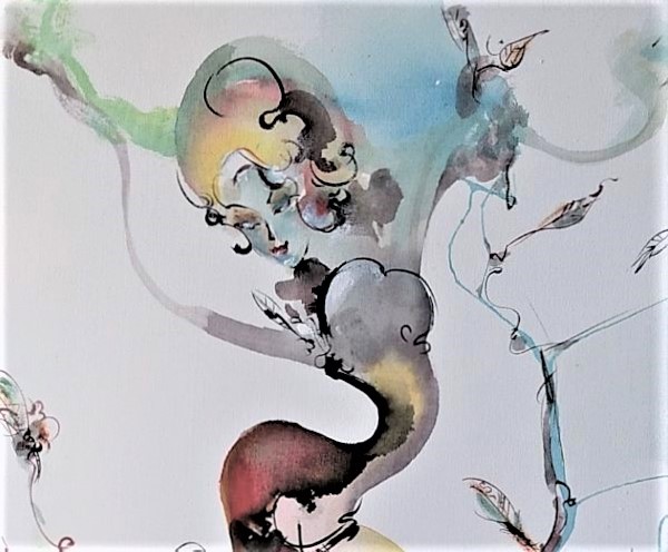 真っ白なキャンバス/紙に、流れるような筆使いで美しい花や女たちが