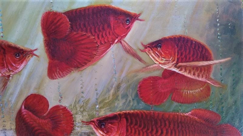 | 油彩画作品 「龍魚レッドアロワナ」 |