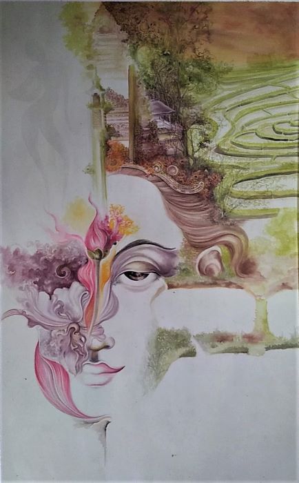真っ白なキャンバス/紙に、流れるような筆使いで美しい花や女たちが一気にしかも繊細な描写で描きだされていく光景にはとても驚かされました。氏にとってアートとは脳内に浮かび上がった(創造した)イメージをキャンバスに映し出すことであり、それが一つの作品となって完成したものがアート作品で、記憶の中から引っ張り出してきて描かれたものは、自分にとってはコピーのようなものとのこと。泉のように湧き出てくるインスピレーションを、産みの苦しみの中でイメージとして創造する姿は時に苦悩に満ちていました。鋭い眼光のKetut氏はその後さっさと釣りに出かけました。何故かバリ島では魚釣りが好きな画家さん多いようです。