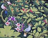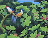 EBEN (I Wayan Eben) 1977年バリ島ウブドに生まれる。200年州都デンパサールのNgurah Rai大学法学部卒業。大学の法科を卒業するも画家の道を選んだだけあって、非凡さを感じさせる構図と巧みな描写で生命感に溢れる野鳥画を描く。氏の描く野鳥は柔らかな羽毛に包まれ今にも羽ばたきそうな迫力がある。
