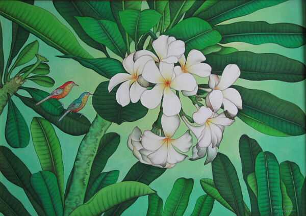 1967年バリ島ウブドに生まれる。1986年ギャニャールの高校卒業。緻密な描写力と絶妙な色彩感の花鳥画の達人。氏の手にかかると動物も植物も生命を宿した宝石のように光り輝きだす。大作になるほどにその力を発揮する。