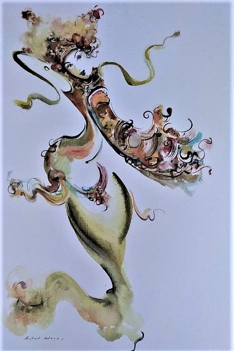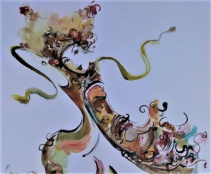 真っ白なキャンバス/紙に、流れるような筆使いで美しい花や女たちが