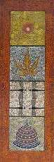 マンク バワ Mangk Bawa 1966年バリ島Batuan生まれ。 有名なトペンダンサーを父に持ち 自身もダンサーとしてヨーロッパ各地でのバリ舞踊公演に参加。シューレアリスト画家として古典舞踊からインスピレーションを受け た作品を多く発表。Batuan村の聖職者でもある。バリ芸術大学卒業。シェンカーズ世界子供絵画コンクール入賞。(自宅アトリエで撮影 2004年9月) |