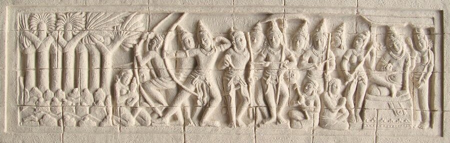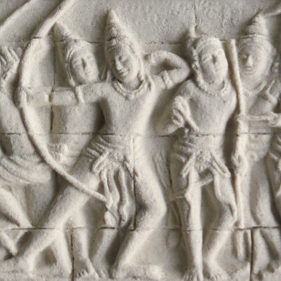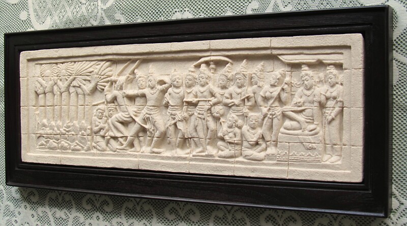 仏教遺跡ボロブドールの回廊に刻まれた壁画を縮小した複製です。暗めの場所に飾って、柔らかなライトアップでお楽しみください。