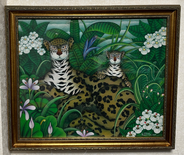 Arsanaさんの絵[豹の親子]には、過去から現代につながる何か糸が感じられ、豹の表情、特に瞳の奥にそれを感じ購入するきっかけになりました。(お父様の画風を受け継いでいるのことでした)
