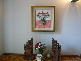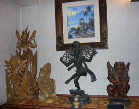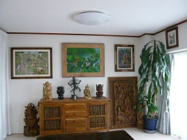 バリ島絵画の私設美術館の完成おめでとうございます。お気付きの事と思いますが、絵画だけでなく木彫像や布製品などの室内装飾品もバリ島産で統一されてますね。それぞれの作品が広い空間に解放されて活き活きして輝いてますよ!