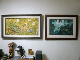 写真中央:熱帯幻想絵画4作品、左からクパキサン2作品、ガルー作品(中央)、クパキサン作品
